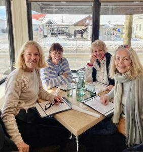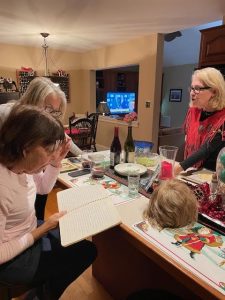 Chris, now known as the Nuremberg wanderer, presented her memento next. She put 3 photographs on the counter. One was of her young family when they lived in Eureka, CA. It was fun to peer into her past. And then she showed 2 pictures of me. In each one, I was next to a former paramour. There was a 70’s picture of me with my college boyfriend and an 80’s one with my new husband. I felt my heart expand with the young love memories. Both men are now gone.