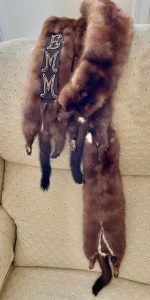 I had one more item to share. Being the theatrical one in the group—a future story will be forthcoming that tells of my memorable Fulton Theatre experience during that same visit—I disappeared and returned modeling my grandmother’s fur piece. Sewn together are two flattened mink pelts, complete with glass eyes, sharp claws, and skinny tails. Back in the day, well-dressed women proudly draped these innocent rodents over a more modest cloth coat to fancy it up. My grandmother, Ethel, even had her initials stitched on the silk lining of the garment. The mink stole is mine, but I have yet to wear it in public.